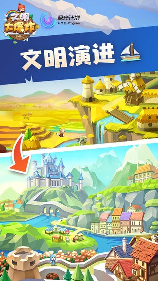 文明大爆炸是一款精彩的模拟养成类手游,在这里玩家将要搜集资源不断的发展自己,庞大的开发性世界,任由玩家进行探索,草原,海洋,山地,沼泽,各种各种的地形供玩家进行探索,寻找各种不同的种类的资源,自己打造出去全新的武器,利用各种道具进而前来继续开采各种资源,众多的人物角色供你进行培养,喜欢的玩家不要错过了!