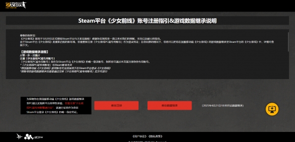 1、点击进入「少女前线PC端专用账号」游戏数据继承通道>>,点击前往数据继承。