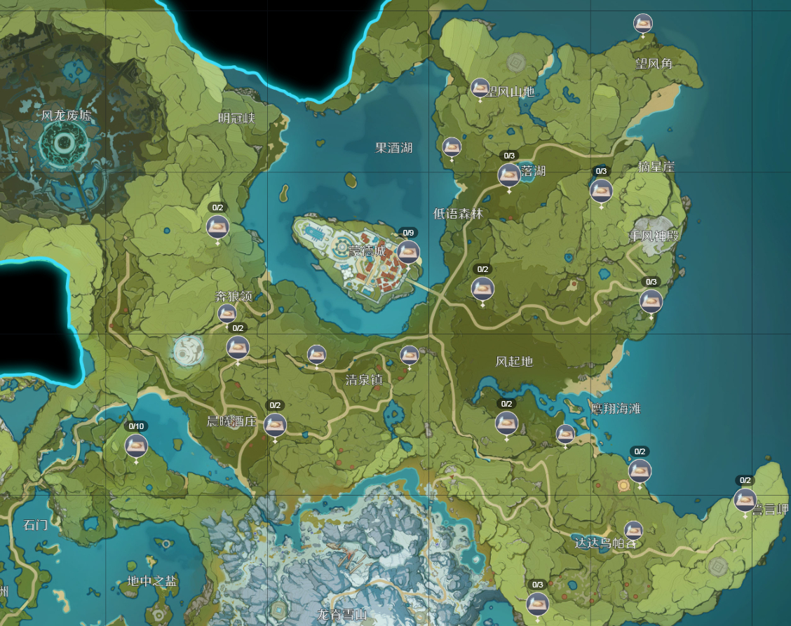 原神蒲公英籽快速采集路线 在原神中一共有53个蒲公英籽的刷新点,蒲公英籽是蒙德的特产,刷新点也在蒙德,主要集中在蒙德城外和晨曦酒庄对岸。