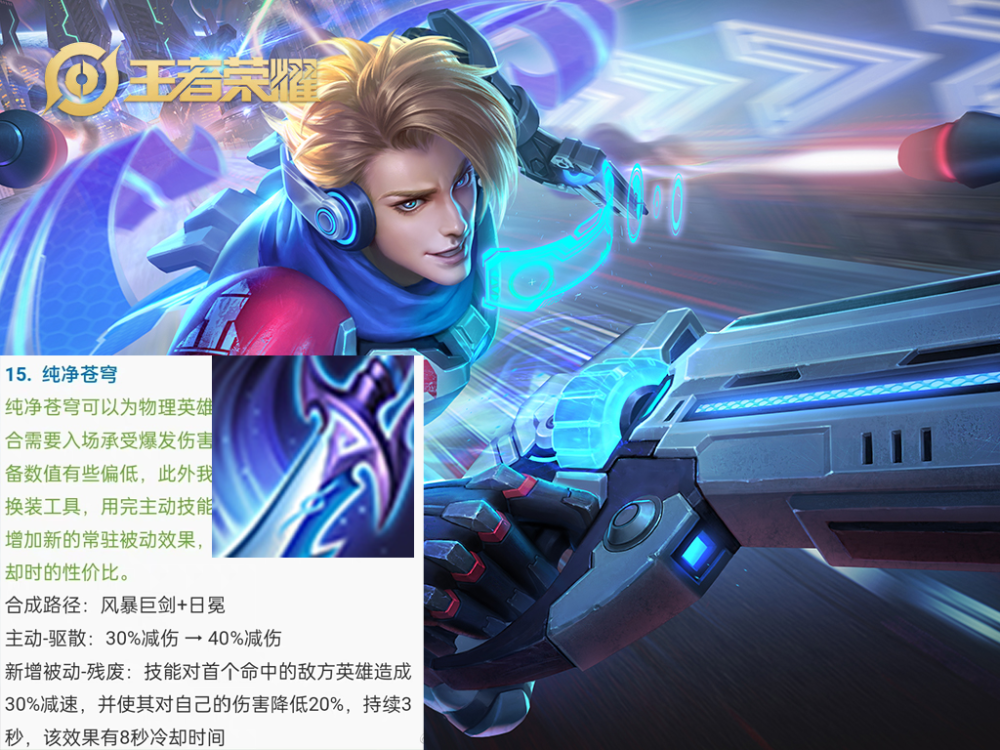 王者荣耀对一系列的装备进行了重做,比如纯净苍穹这件装备,主动技能的效果减免伤害率由30%提升至40%,还新增了了一个残废被动效果,能够造成减速效果以及对自己伤害降低效果,配合主动效果能够大幅降低敌方英雄对自己的伤害,甚至可以说对单个英雄可以造成60%的免伤效果,马可波罗这类非常需要进场输出的英雄就非常需要这件装备。